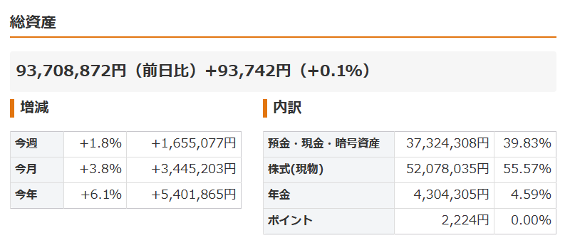 日本株と金価格の上昇を享受して順調に資産が増えました。